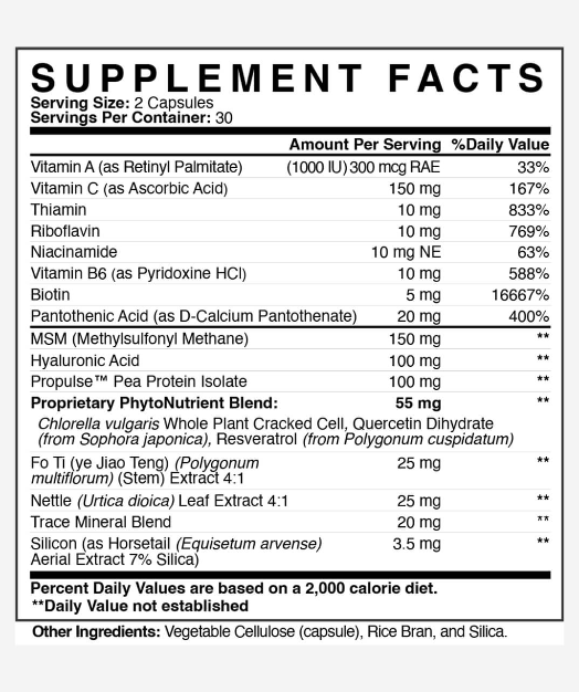 Resveratrol: Reduces the visibility of wrinkles, sagging, dark spots, and dullness from within.†*